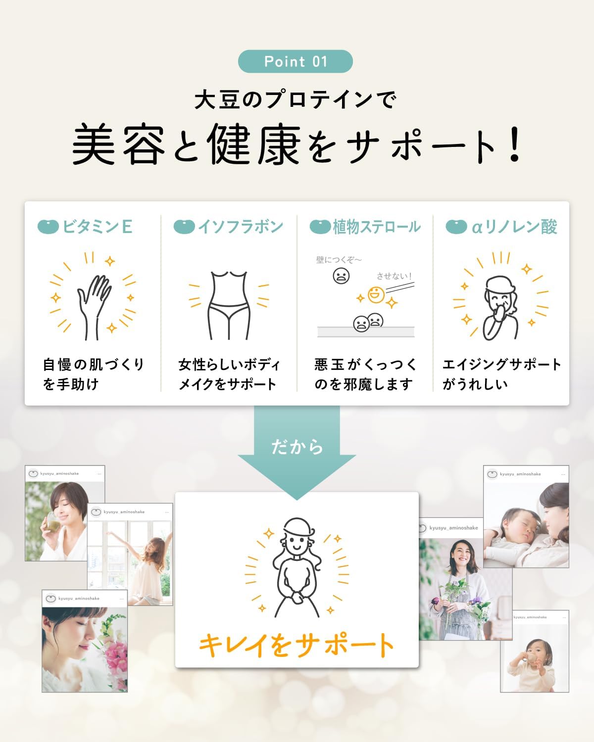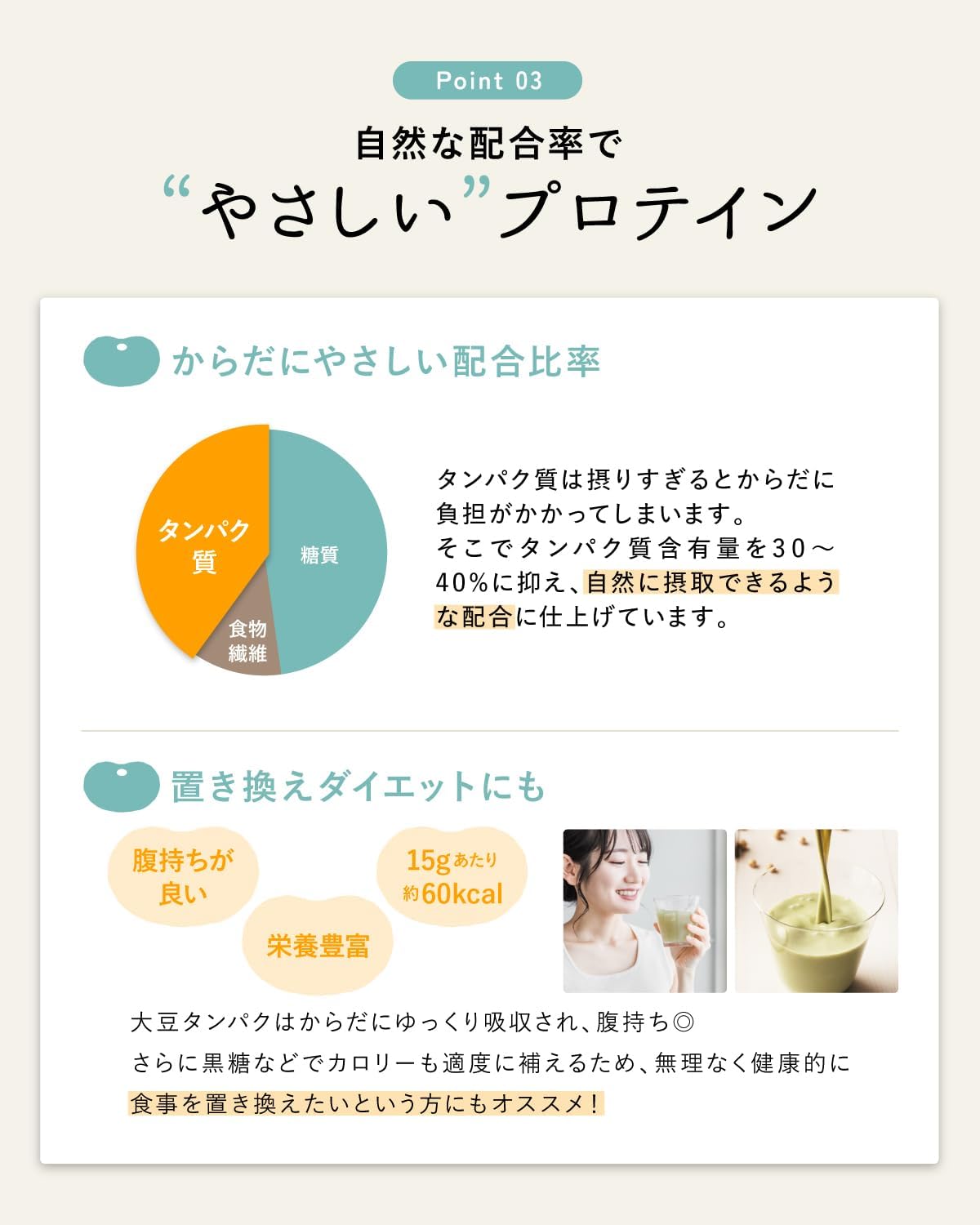 - ✨【大豆のプロテインだから、タンパク質+女性に嬉しい!】 ビタミンE・イソフラボン・植物ステロール・aリノレン酸配合で、効率的にタンパク質をチャージしながら女性のキレイをサポート。