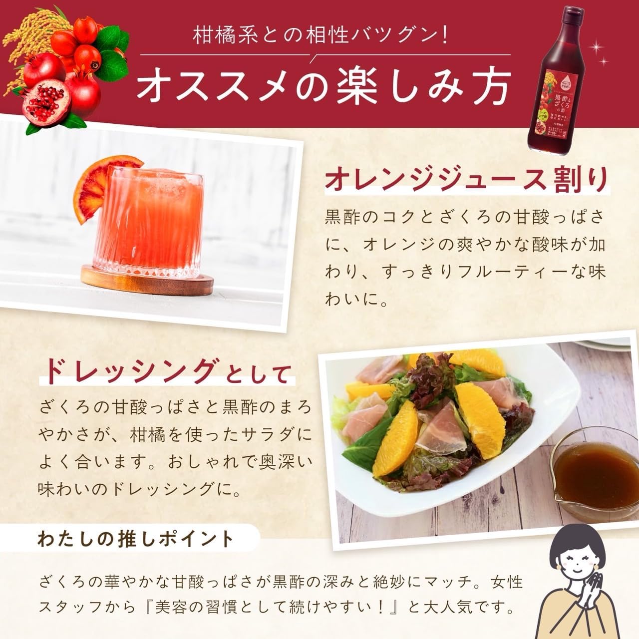酢と5種類の果汁のフルーティーな味わい