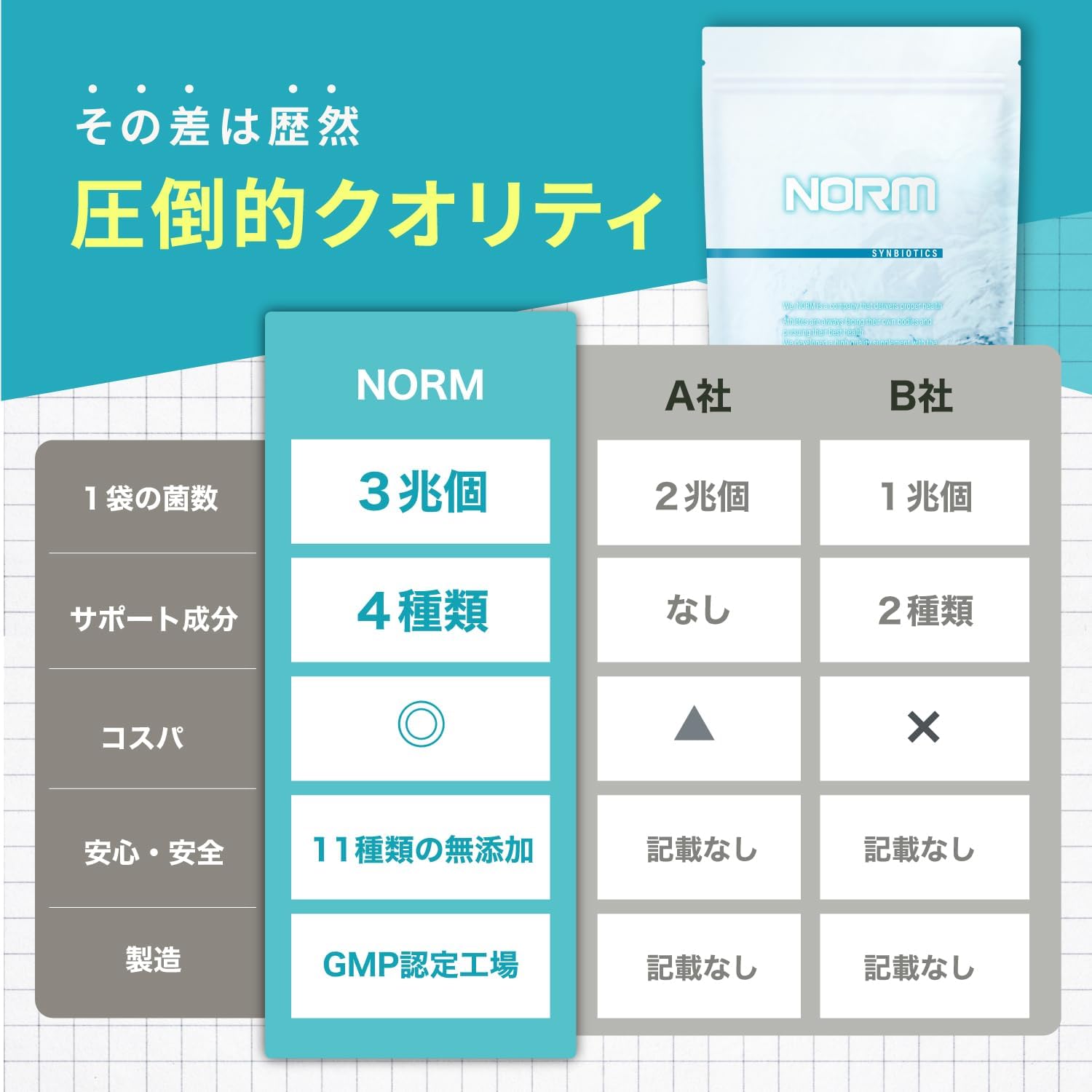 NORM ノーム 乳酸菌 ビフィズス菌 酪酸菌 サプリ シンバイオティクス 1袋に3兆個の乳酸... – POWERFUL CARE INNER BEAUTY