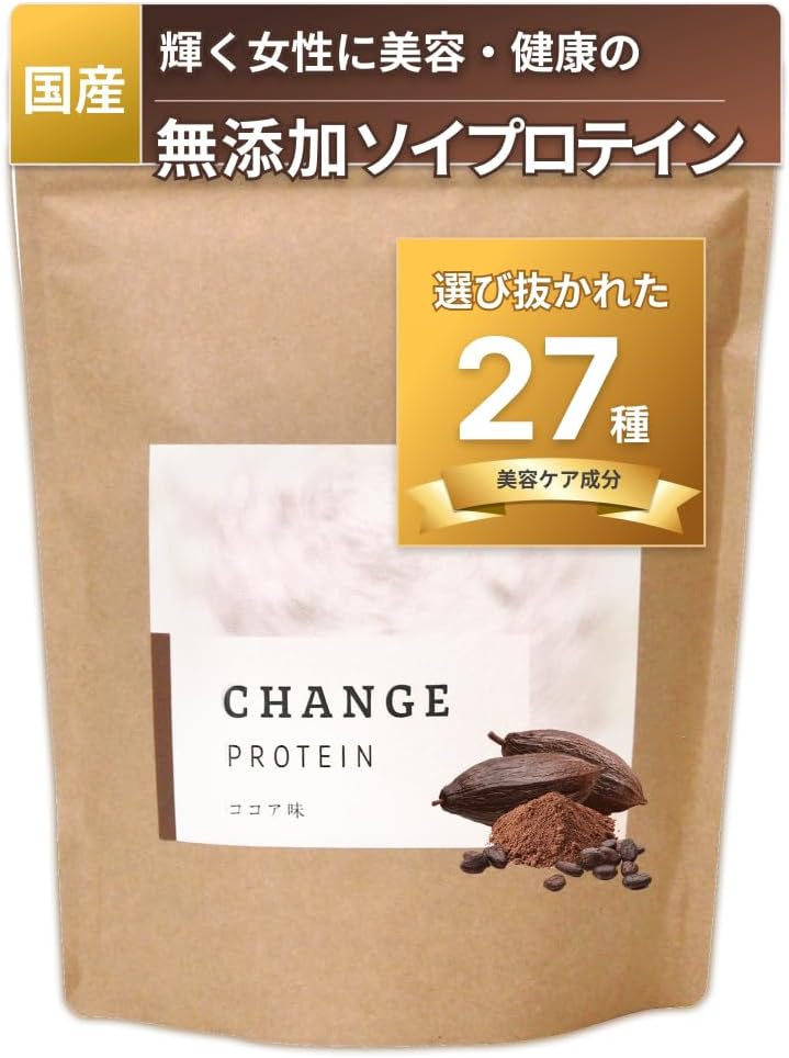 ソイプロテイン 無添加 シェイカー付き 女性 チェンジプロテイン 27種の美容ケア成分 ソイ ...