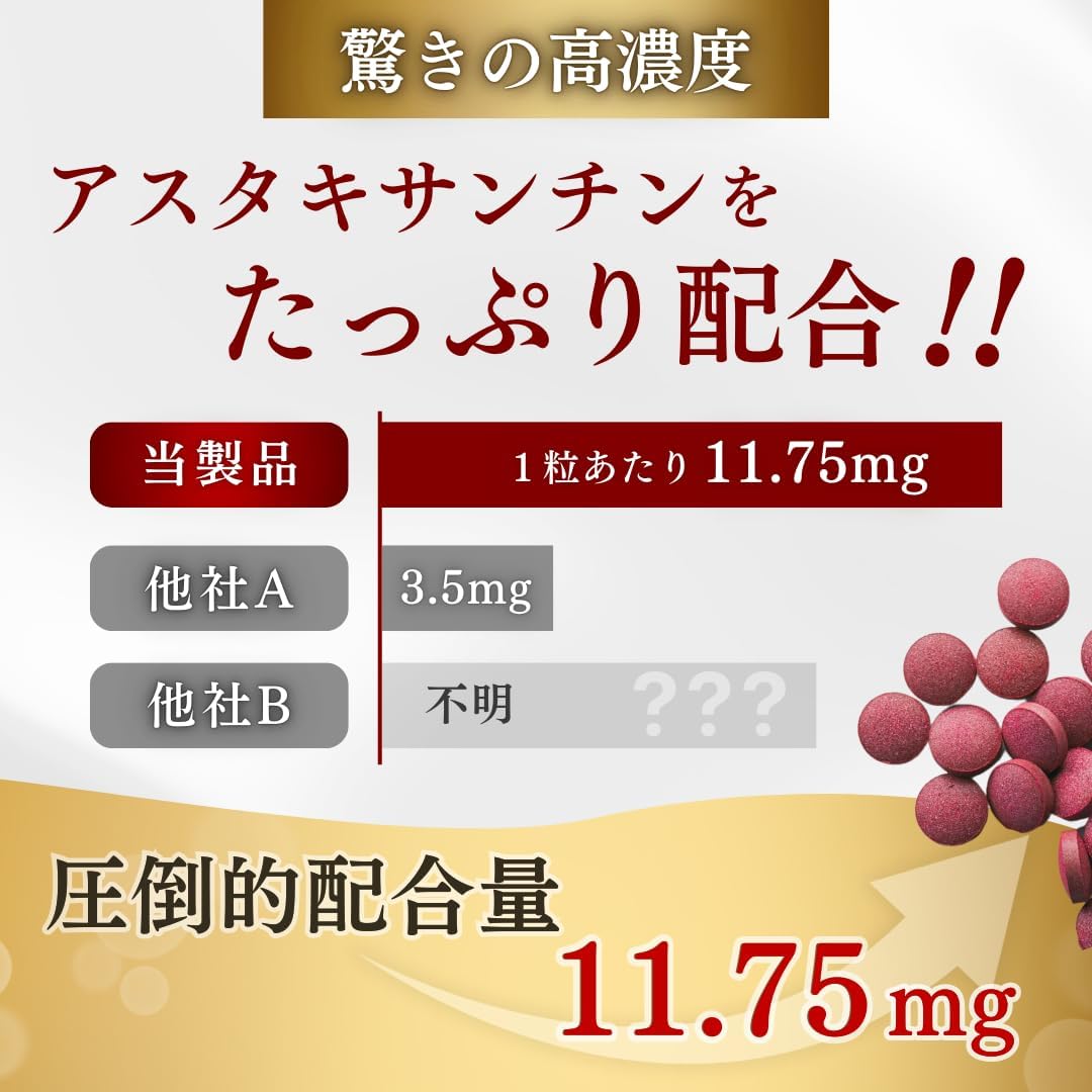 アスタキサンチン サプリメント90粒 3か月分 1粒にアスタキサンチンフリー体換算値11.75...