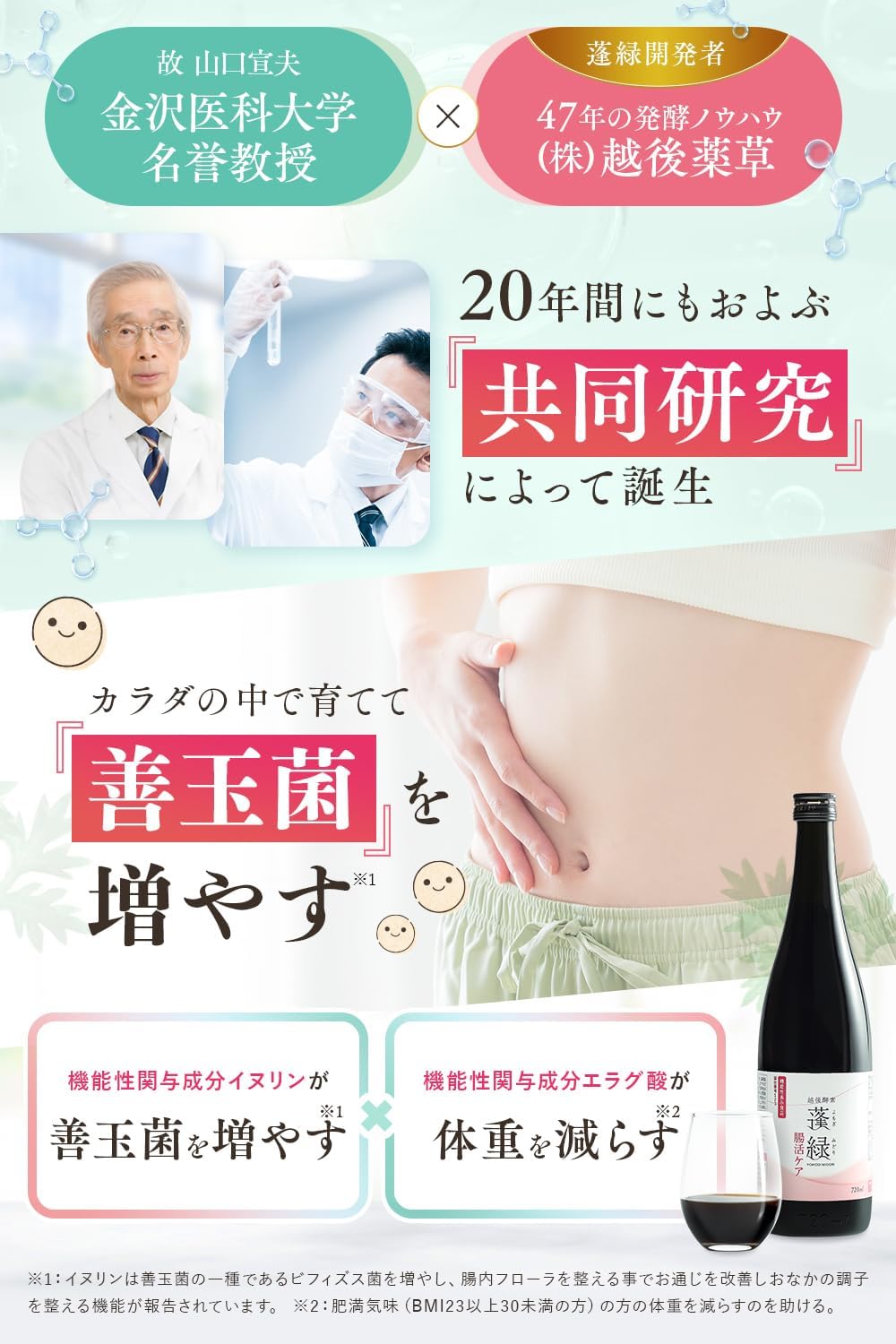 - ◆医科大学との20年の共同研究◆ 蓬緑は「本当に実感できる良い商品を」その一心で金沢医科大学名誉教授との20年の共同研究によって完成した"オリジナル酵素ドリンク"です。伝統の独自発酵技術で作られた酵素原液は日本成人病予防協会”の推奨品として認定されています。
