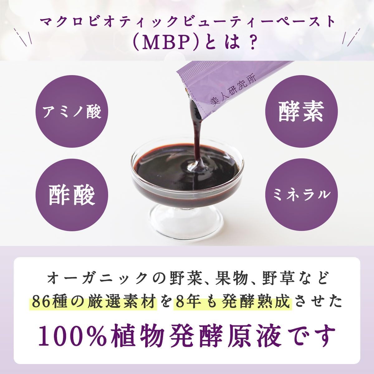 - ✅【無添加酵素ペースト】マクロビオティックビューティーペースト(MBP)は、環境に配慮した土地で育てられたオーガニックの野菜、果物、野草などの厳選素材を長期発酵・熟成させて作られた植物発酵原液です。