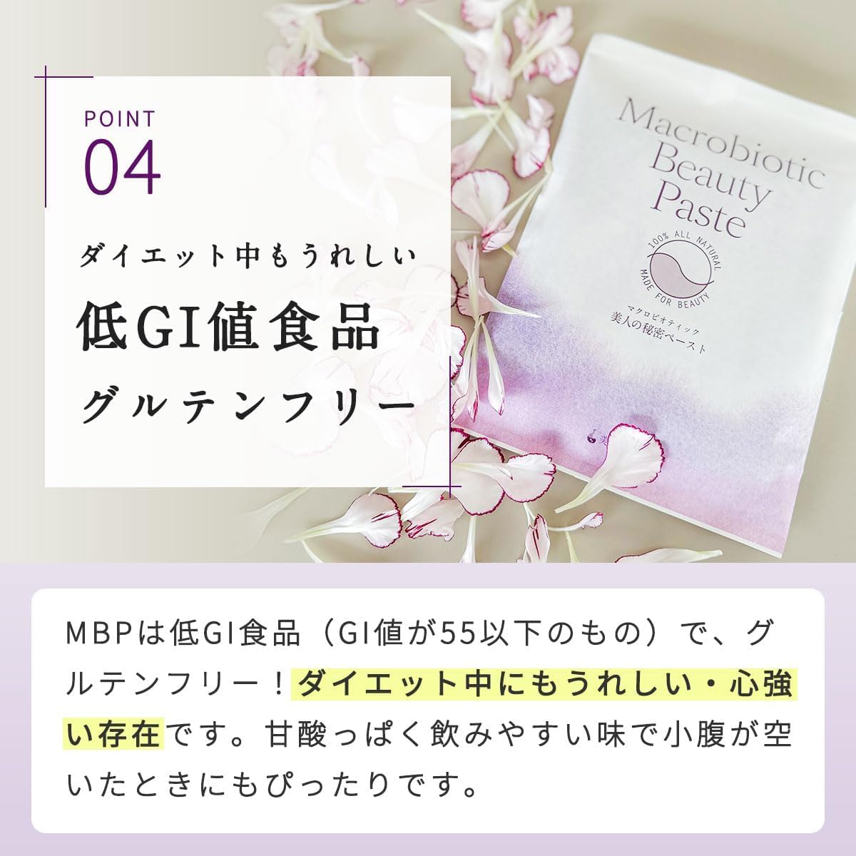 マクロビオティックビューティーペースト 7本入り(1本10g) 酵素ペースト マクロビオティックビューティーペースト 30本入り(1本10g) 酵素ペースト マクロビオティックビューティーペースト 60本入り(1本10g) 酵素ペースト カスタマーレビュー 5つ星のうち4.6 29 5つ星のうち4.6 29 5つ星のうち4.6 29 価格 ¥2,268¥2,268 ¥8,856¥8,856 ¥16,200¥16,200 特徴 まずはお試し7本から【MBPで手軽に発酵習慣】発酵食品であるMBPには、善玉菌の栄養源となる成分が含まれています。日々の食事に取り入れることで、内側からの健康維持をサポートします。 しっかり毎日30本【MBPで手軽に発酵習慣】発酵食品であるMBPには、善玉菌の栄養源となる成分が含まれています。日々の食事に取り入れることで、内側からの健康維持をサポートします。 60本【MBPで手軽に発酵習慣】発酵食品であるMBPには、善玉菌の栄養源となる成分が含まれています。日々の食事に取り入れることで、内側からの健康維持をサポートします。
