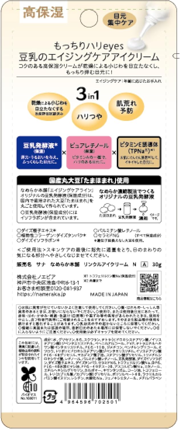 なめらか本舗 サナ リンクルアイクリーム NA 30g 豆乳イソフラボン – POWERFUL CARE OUTER BEAUTY