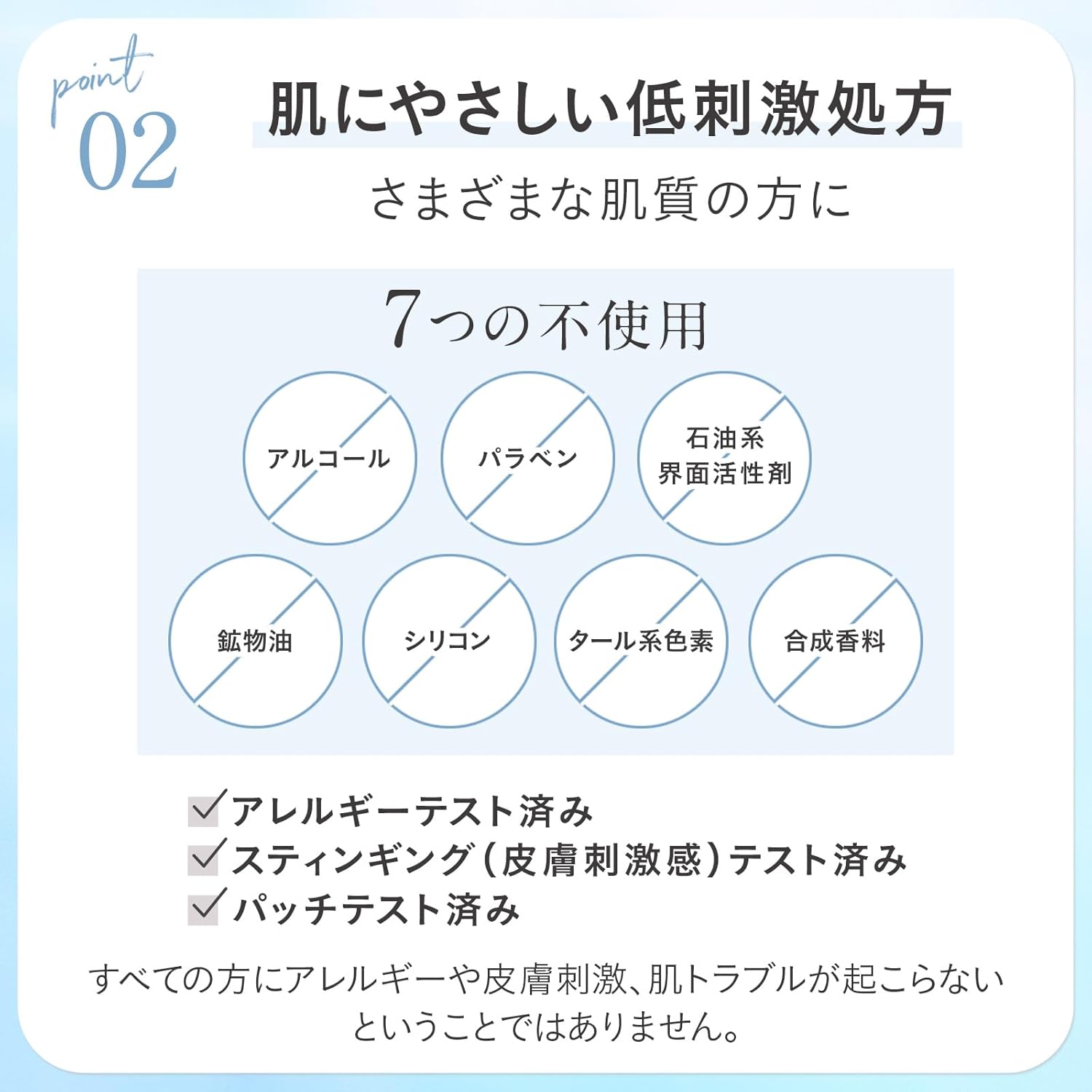 - ✅Point2 :低刺激処方で敏感肌の方にも肌を包み込むような穏やかな香り