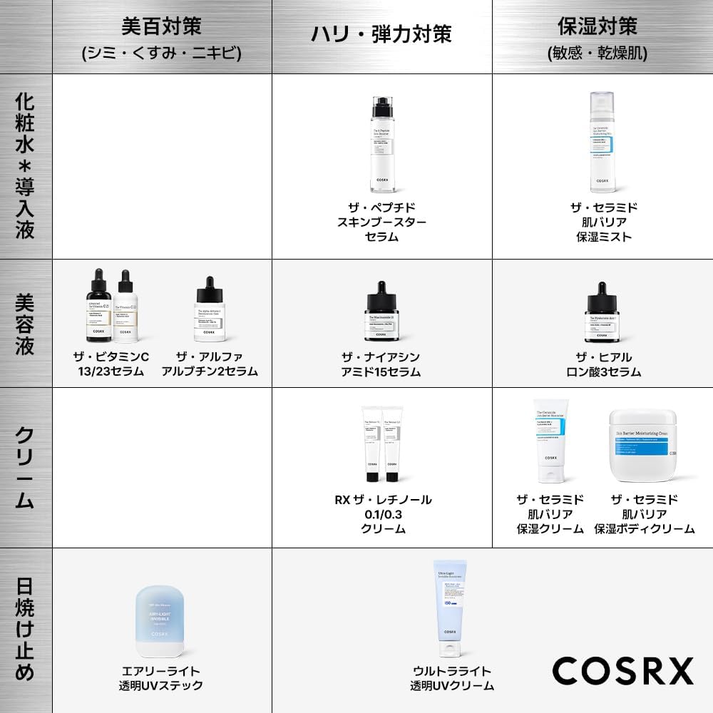 [リニューアル] ビタミンC23 セラム 20mL ビタミンC13 セラム20mL 6ペプチドスキンブースターセラム150mL レチノール0.1クリーム20mL アルファアルブチン2ニキビ跡ケアセラム50mL ナイアシンアミド15セラム20mL カスタマーレビュー 5つ星のうち4.4 116 5つ星のうち4.0 2,045 5つ星のうち4.3 9,995 5つ星のうち4.2 1,645 5つ星のうち4.3 943 5つ星のうち4.3 7,320 価格 ¥2,680¥2,680 ¥2,280¥2,280 ¥2,480¥2,480 ¥2,430¥2,430 ¥2,349¥2,349 ¥2,480¥2,480 効果 くすみ・美白 くすみ・美白 ペアリングで効果強化 しわ ニキビ跡ケア・美白 くすみ・バリア強化 タイプ 美容液 美容液 トナー クリーム 美容液 美容液 使用順番 化粧水の後 化粧水の後 化粧水の後 化粧水の後 化粧水の後 化粧水の後 肌への刺激がない、もしくは少ない ✔ ✔ ✔ ✔ ✔ ✔ 動物実験未実施 ✔ ✔ ✔ ✔ ✔ ✔