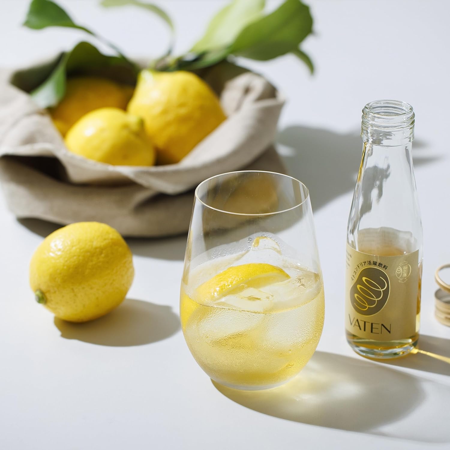 よく冷してストレートや炭酸割り、お湯割りがおすすめですが 暑い季節にはレモンをひと搾りすると、いっそう爽やかに お飲みいただけます!レモン果汁の分量はお好みで! 夏のレモン摂取は、紫外線による肌ダメージのケアも期待できて メリットばっちり。レモンの香り(リモネン)によって、 リフレッシュ&リラックス効果も期待できそうです。 もちろん、爽やかな酸味が加わることでVATENの甘味コントロールにも効果的。