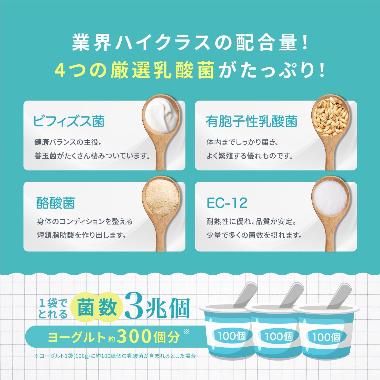 【4種類の厳選した乳酸菌を3兆個配合】