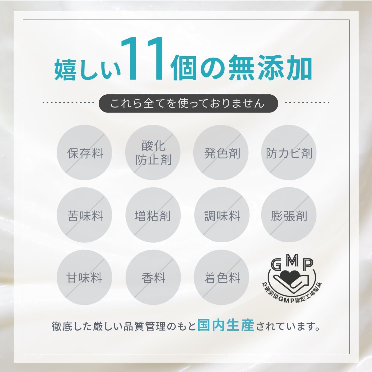 - ✅【嬉しい11個の 無添加 ・国内製造】 安心して続けられるように、無添加にもこだわりました。不使用添加物は以下になります(甘味料・香料・着色料・保存料・酸化防止剤・発色剤・防カビ剤・苦味料・増粘剤・調味料・膨張剤)。さらに徹底した厳しい品質管理を行っている国内にて製造。(国内製造とは商品自体が国内で作られていることを示しています)