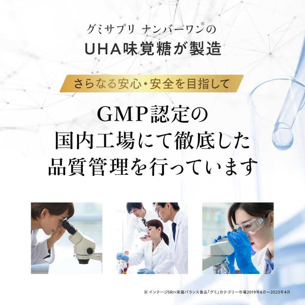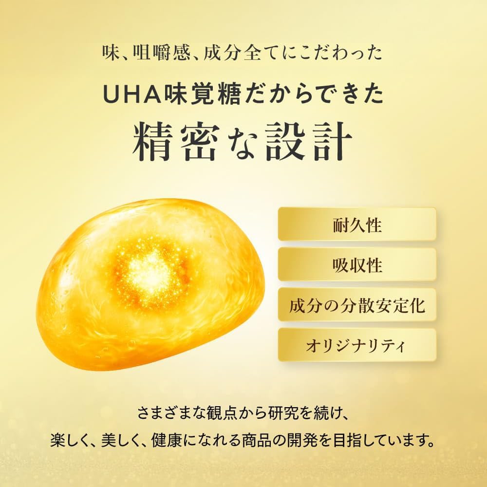 『若々しさは、積み重ねることができる』 ・高純度NMN 334mg ・還元型コエンザイムQ10 100mg ・コラーゲン 180mg 1日2粒、上質でスマートなNMN習慣 「NMNを高配合」1日2粒で必要量をカバー 「安心安全へのこだわり」MADE IN JAPAN品質 「厳格な品質基準」純度99%の高品質 UHA味覚糖だからできた精密な設計 ・耐久性 ・吸収性 ・成分の分散安定化 ・オリジナリティ さまざまな観点から研究を続け、楽しく、美しく、健康になれる商品の開発を目指しています。