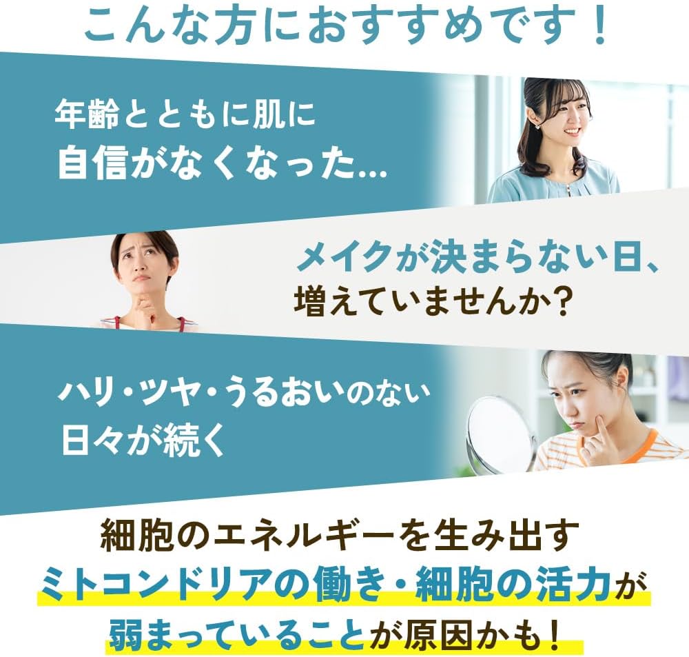 - 【ミトコンドリアを意識した設計】ミトコンドリアを意識したバランス設計で、エネルギー産生に関わる還元型コエンザイムQ10とPQQを組み合わせました。年齢に応じたコンディショを多角的にサポートし、続けやすさを重視しています。