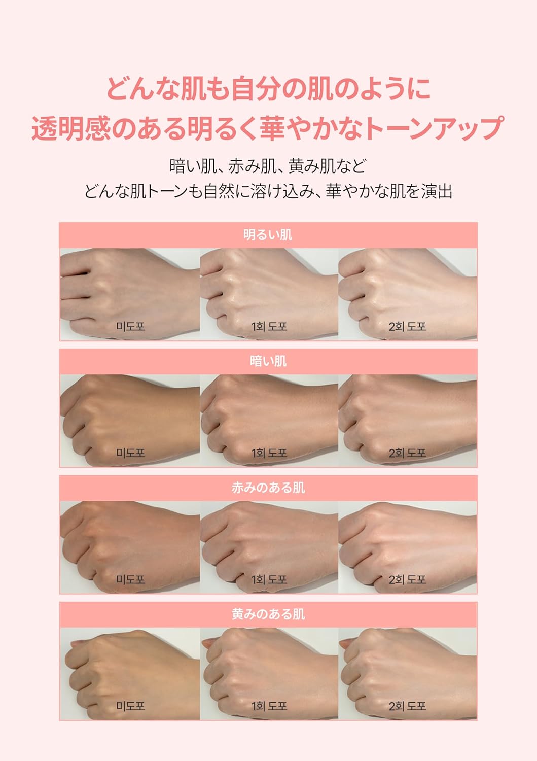- 🌸【肌色補正とツヤ感を同時に実現】自然なトーンアップ効果で、素肌のように明るく健康的なお肌へ導きます。化粧下地としてもご使用いただける、ナチュラル仕上げのサンクリームです。