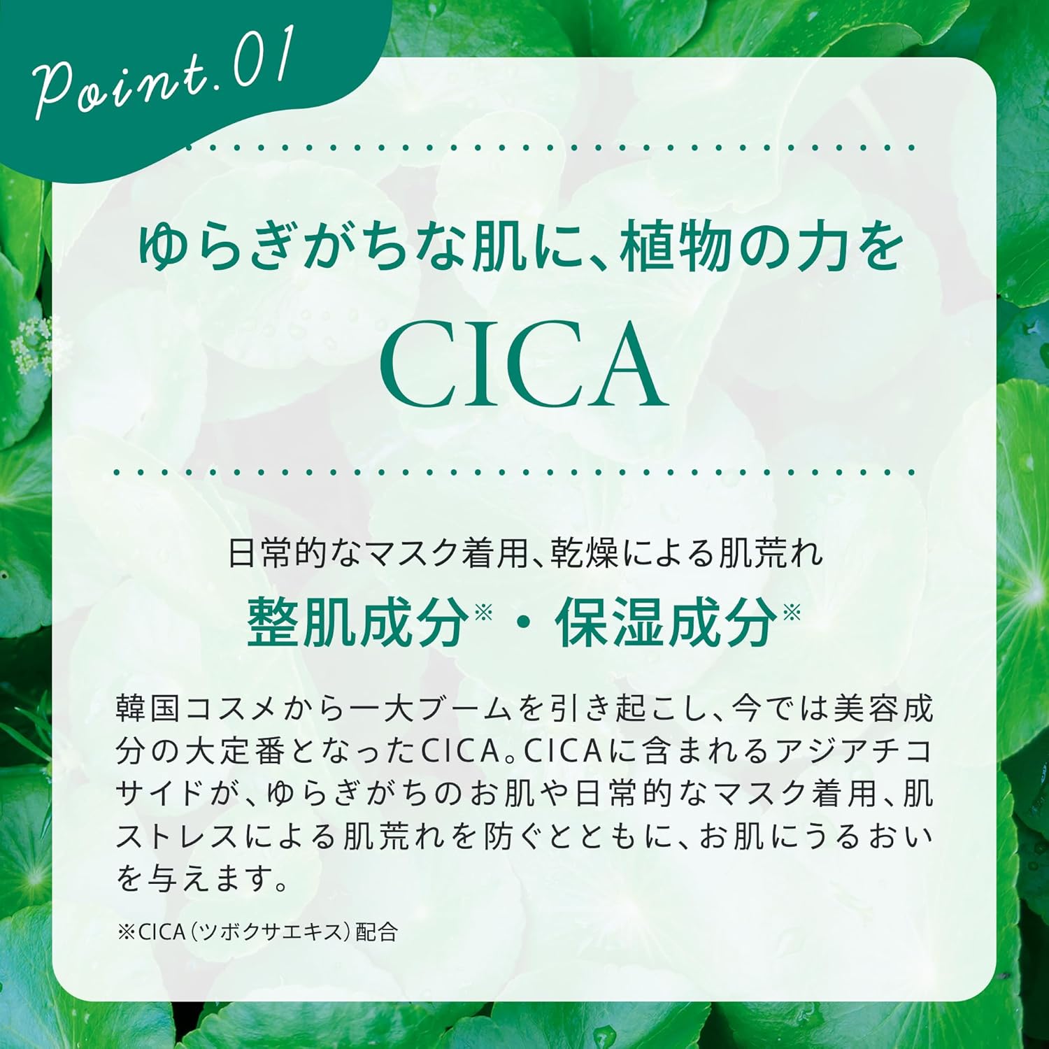 - 韓国コスメでも定番のCICA(ツボクサエキス)成分をふんだんに配合したフェイスマスク