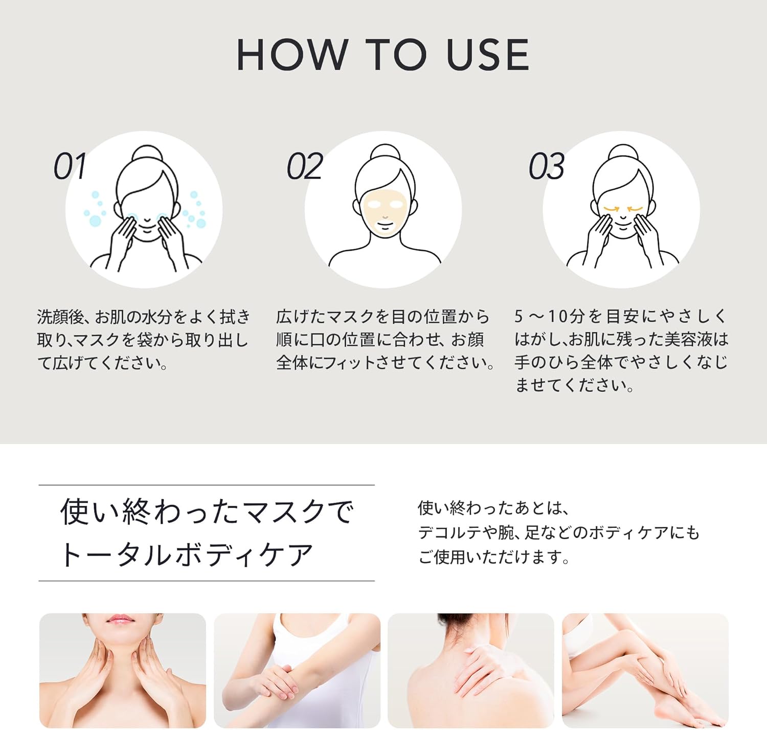 | 商品の利点 | 注目の美容成分(CICA,NMN,セラミド)を配合したフェイスマスクです。 |