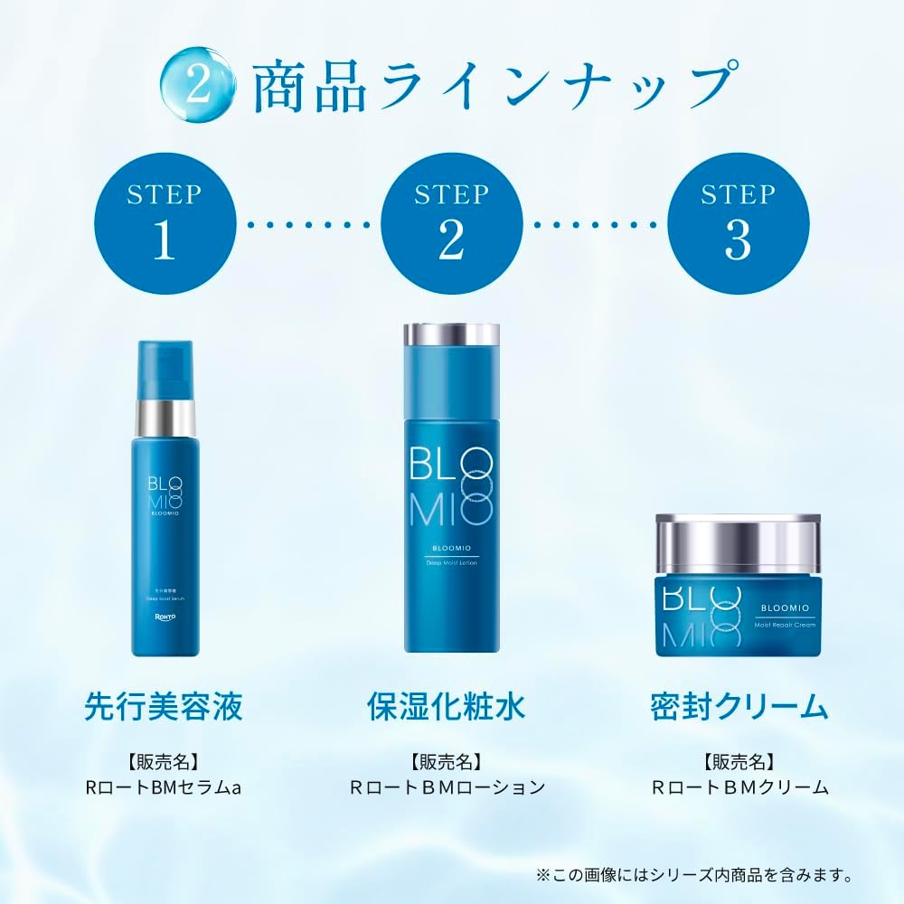 ブルーミオ ディープブーストセラム 先行美容液 ブルーミオ ディープモイストローション 保湿化粧水 ブルーミオ モイストリペアクリーム カスタマーレビュー 5つ星のうち4.4 74 5つ星のうち3.9 60 5つ星のうち3.8 45 価格 ¥3,850¥3,850 ¥3,520¥3,520 ¥4,400¥4,400 容量 50g 145ml 30g 商品特徴 とろっと濃密な美容液が肌に吸い込まれるように浸透。使うたびうるおう肌へ。次に使う化粧水などの肌なじみをよくする先行美容液。 肌に溶け込み、やわらかな感触に。角層内をうるおいで満たす化粧水。 濃厚なコクでうるおいを密封。ハリ感を引き出すクリーム。 香り カーミングフルールの香り カーミングフルールの香り カーミングフルールの香り 役割 先行美容液 保湿化粧水 密封クリーム