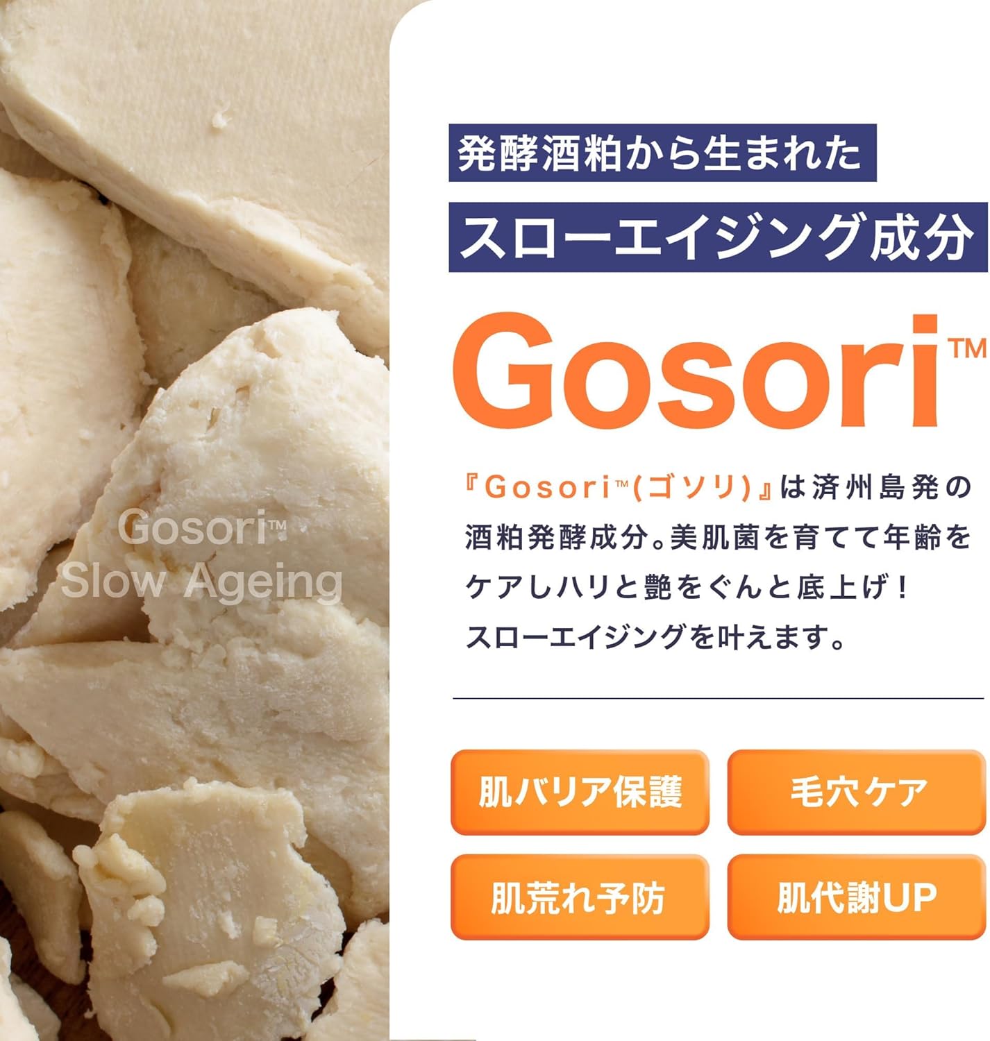 - DOPAMYのキー成分「Gosori」済州島の伝統発酵法で作られた「ゴソリ酒」の酒かすから得られる天然由来成分。