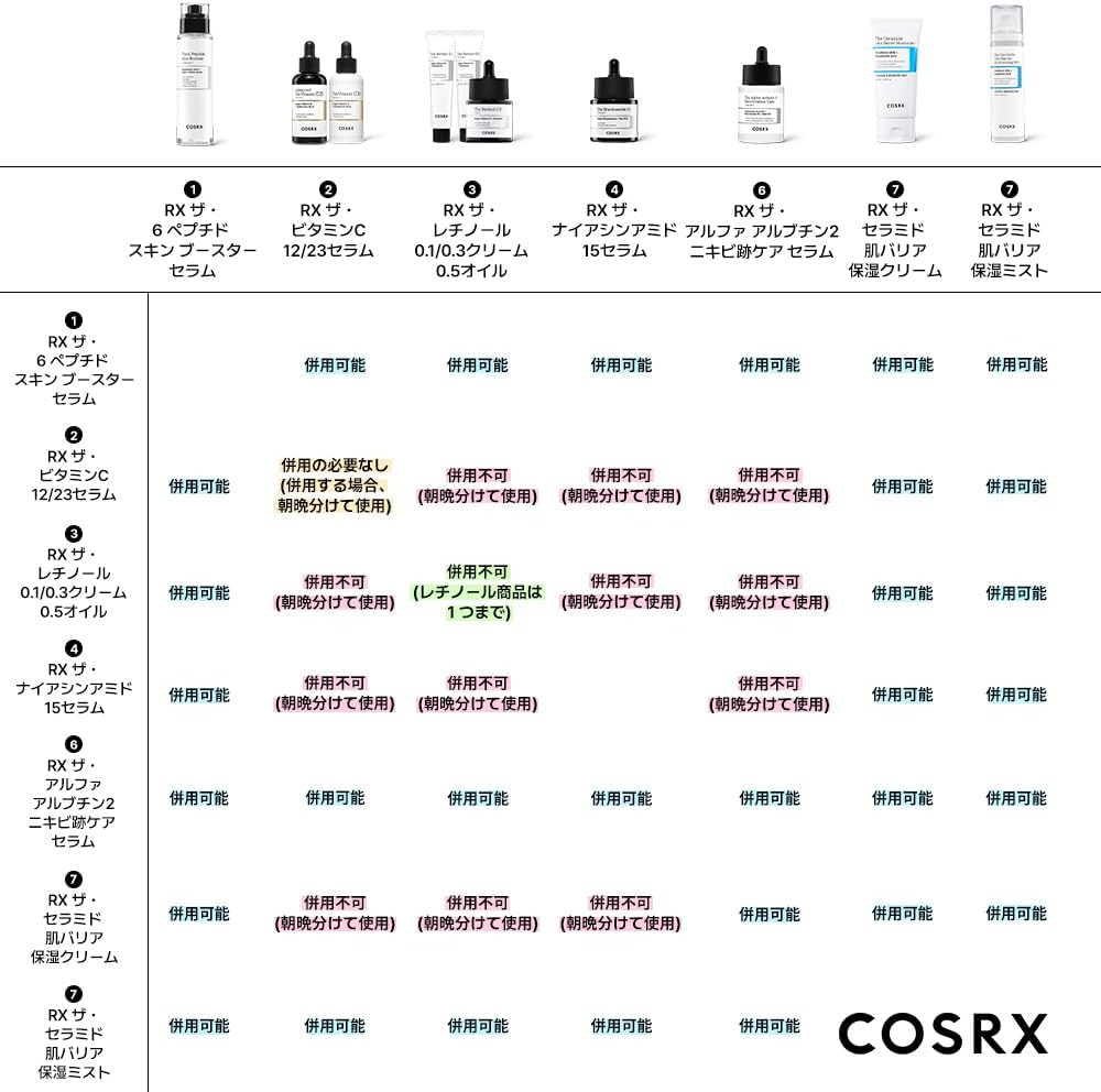[リニューアル] ビタミンC23 セラム 20mL ビタミンC13 セラム20mL 6ペプチドスキンブースターセラム150mL レチノール0.1クリーム20mL アルファアルブチン2ニキビ跡ケアセラム50mL ナイアシンアミド15セラム20mL カスタマーレビュー 5つ星のうち4.4 116 5つ星のうち4.0 2,045 5つ星のうち4.3 9,995 5つ星のうち4.2 1,645 5つ星のうち4.3 943 5つ星のうち4.3 7,320 価格 ¥2,680¥2,680 ¥2,280¥2,280 ¥2,480¥2,480 ¥2,430¥2,430 ¥2,349¥2,349 ¥2,480¥2,480 効果 くすみ・美白 くすみ・美白 ペアリングで効果強化 しわ ニキビ跡ケア・美白 くすみ・バリア強化 タイプ 美容液 美容液 トナー クリーム 美容液 美容液 使用順番 化粧水の後 化粧水の後 化粧水の後 化粧水の後 化粧水の後 化粧水の後 肌への刺激がない、もしくは少ない ✔ ✔ ✔ ✔ ✔ ✔ 動物実験未実施 ✔ ✔ ✔ ✔ ✔ ✔